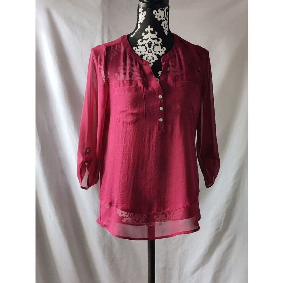 Express Womens Roll Tab Sleeve Button Tunic Shirt Blouse Pullover Pink Size Smal