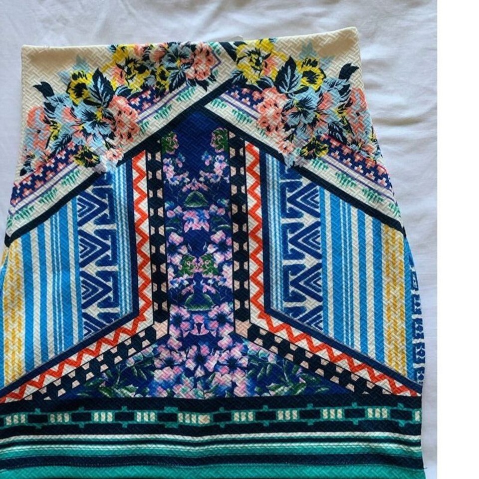 Discover the vibrant charm of the Jealous Tomato A-Line Skirt, a must-have for your casual wardrobe. This knee-length skirt in a multicolor geometric pattern is crafted from soft, stretchy fabric, ensuring a comfortable fit for all-day wear. Perfect for any season, it effortlessly transitions from brunch with friends to a relaxed day out. Pair it with your favorite top and let the playful design speak for itself. Hand wash only to keep it looking fresh. New with tags (NWT).