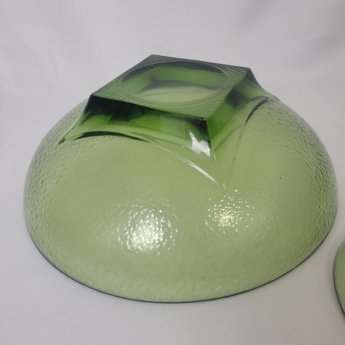 Hazel Atlas Colony Bowl Set Avocado Green Chip Dip Serving Pebbled Glass Vtg MCM