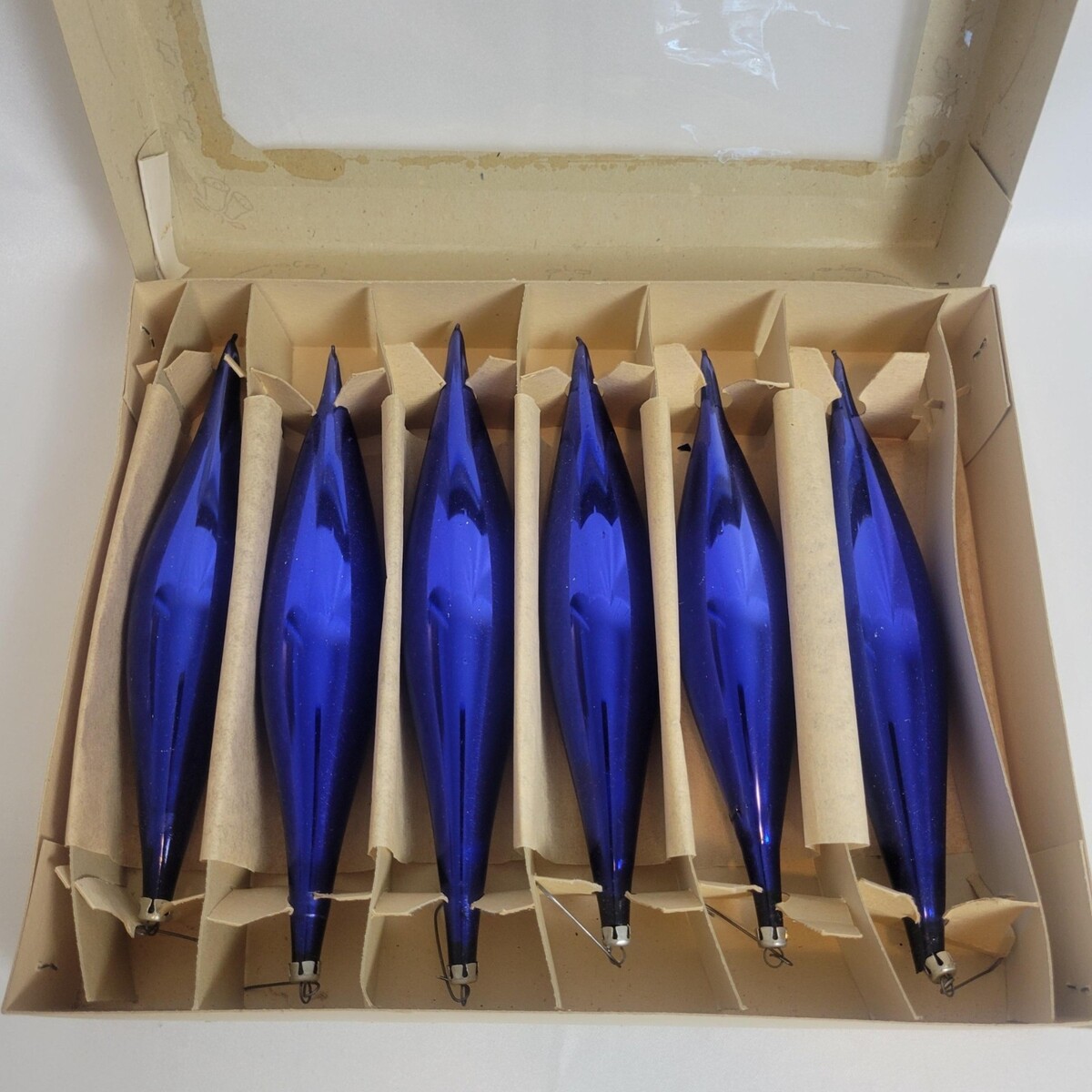 Antique Jumbo Blown Glass Fluted Teardrop Icicles 8" Ornaments Poland Box RARE !