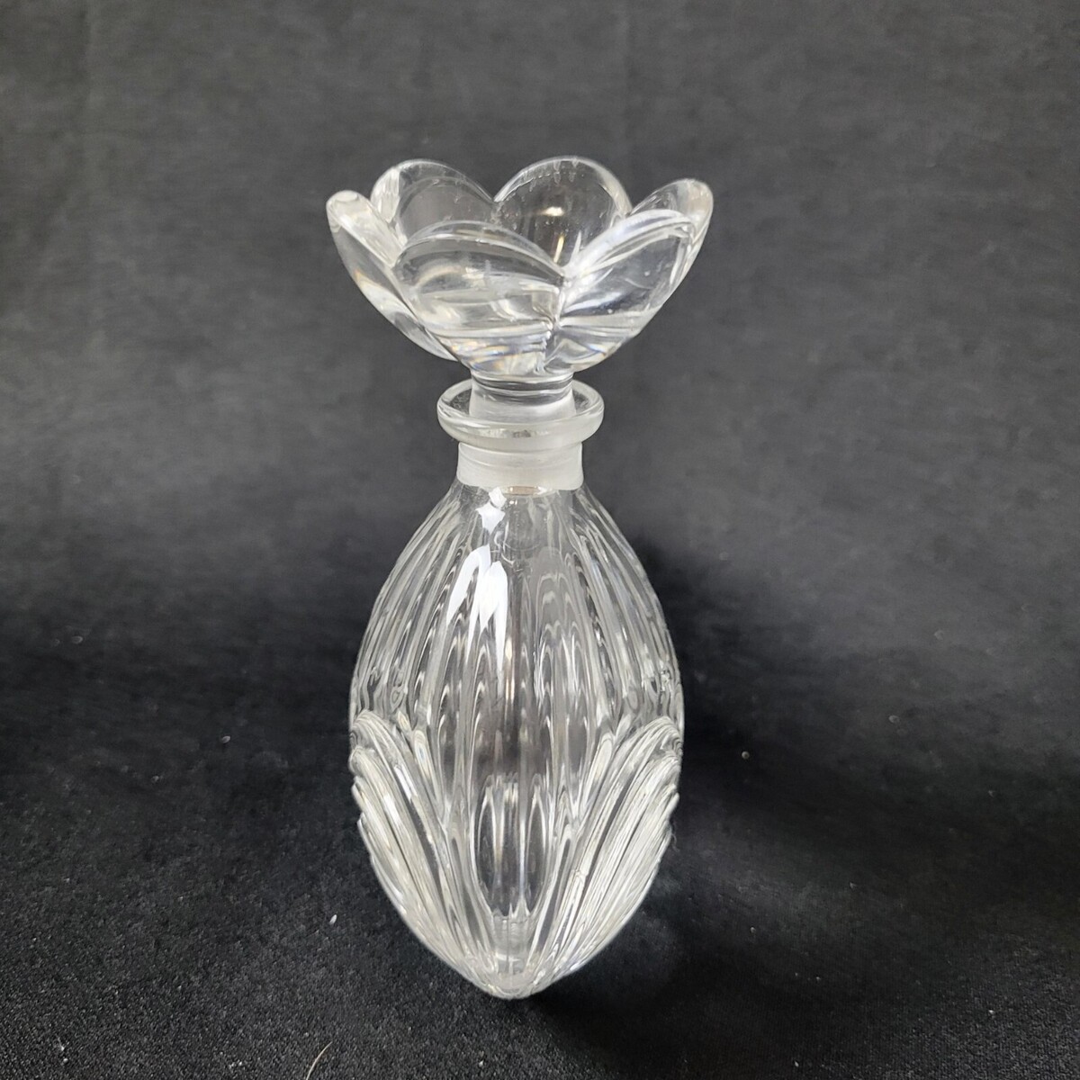 RCR Perfume Bottle Flower Stopper Made in Italy Royal Crystal Rock 5" x 4" VTG