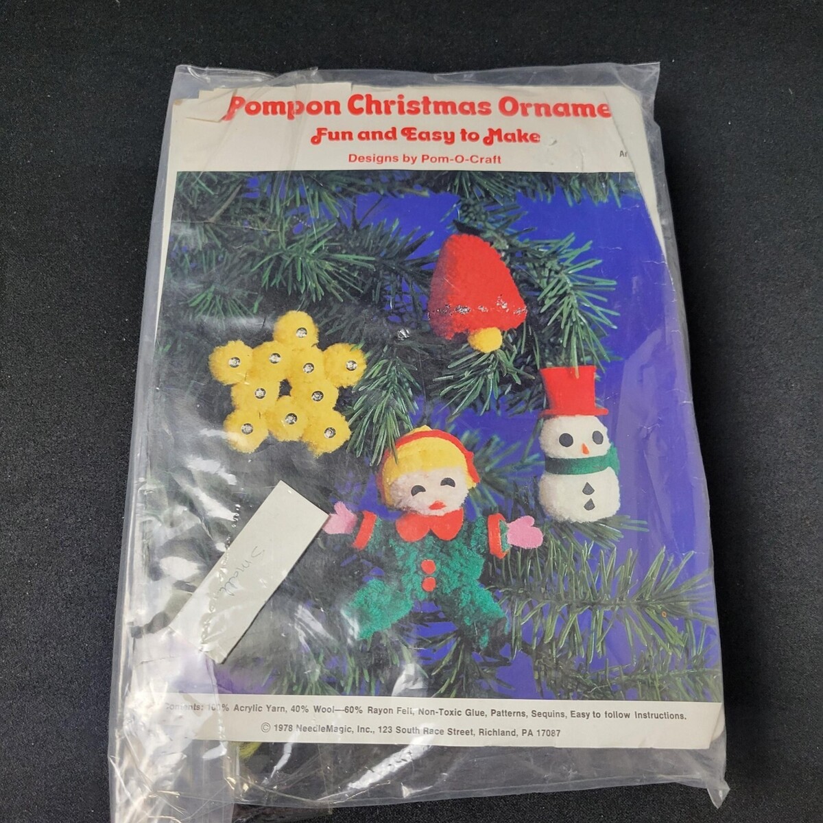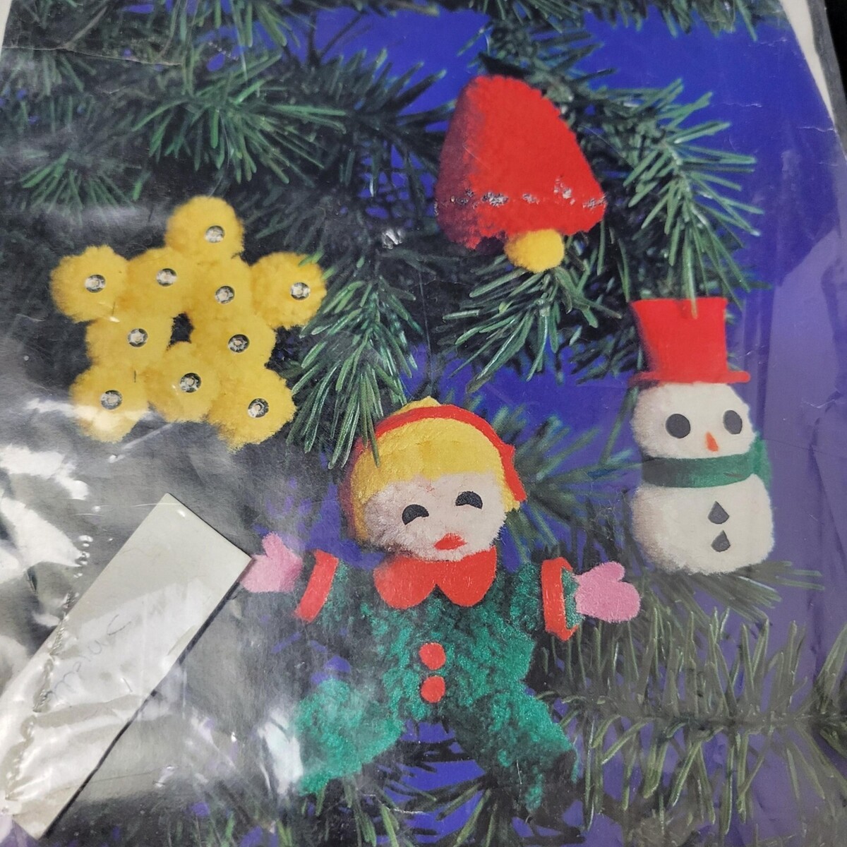Vintage Old Fashioned Christmas Ornaments Kit Pom-O-Craft Elf Bell Star Snowman