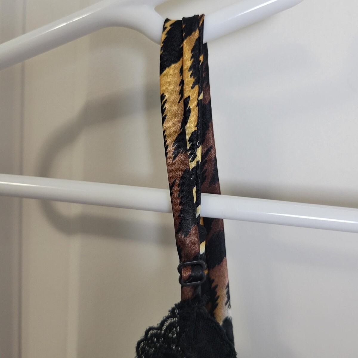 Women's size L - Leopard print with black lace. Adjustable straps.