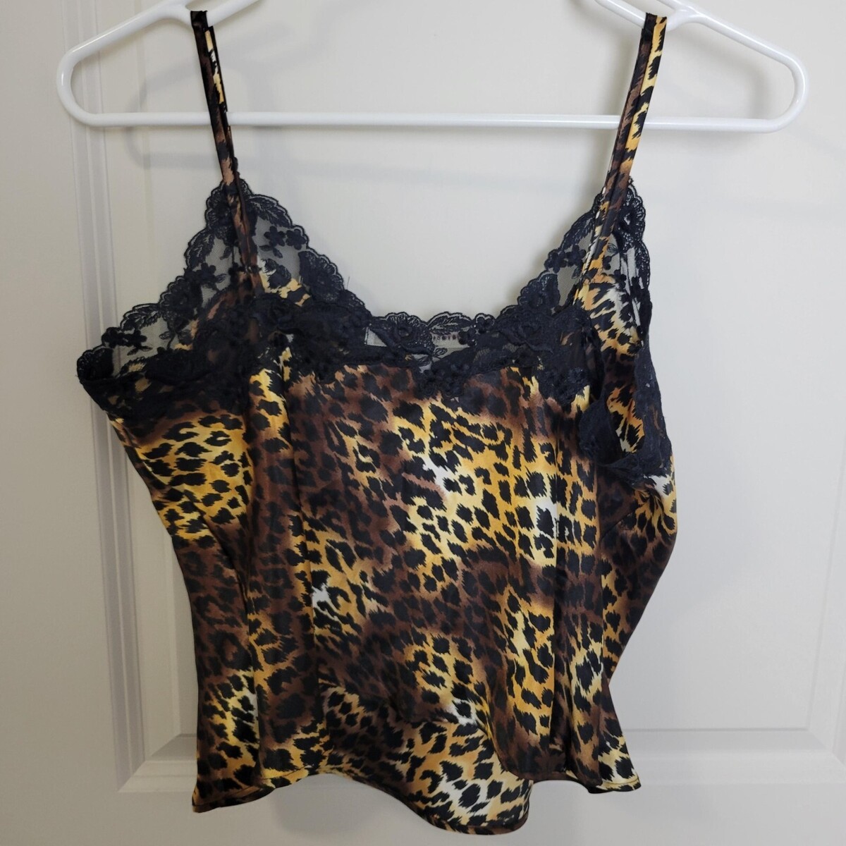 Victoria's Secret Satin Camisole Top Women's L Leopard Print Black Lace Mob Wife