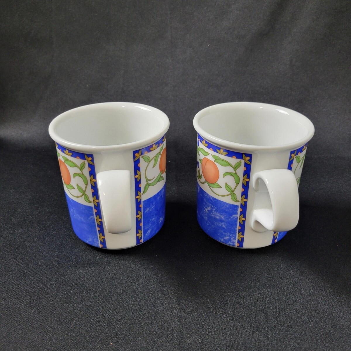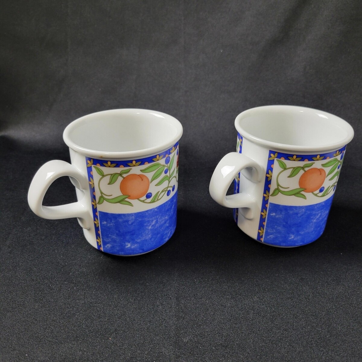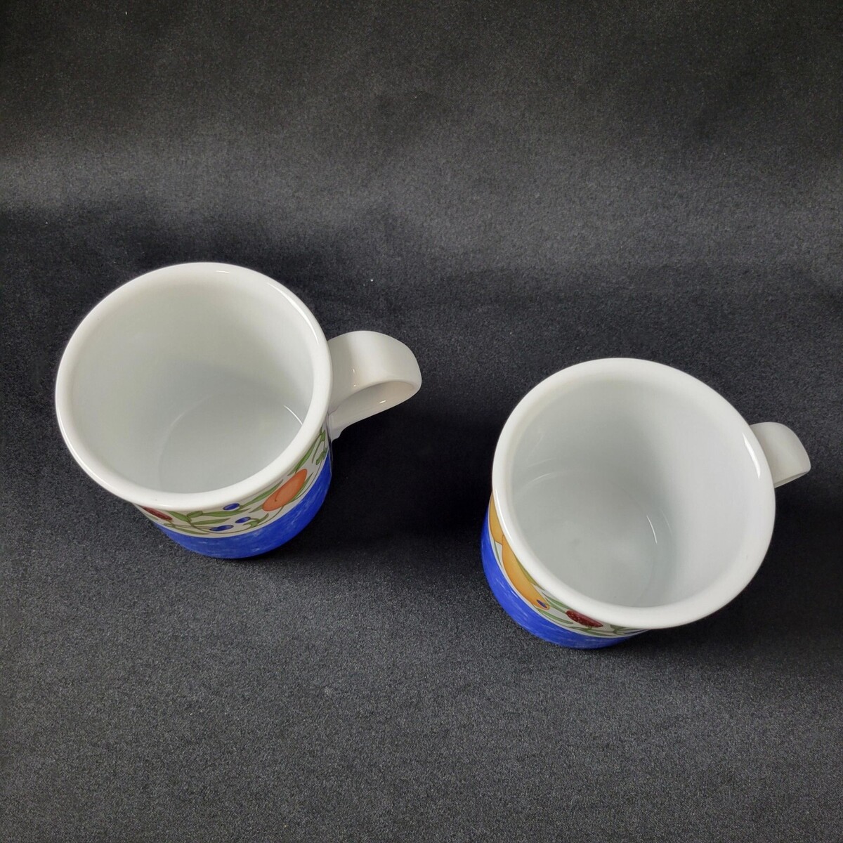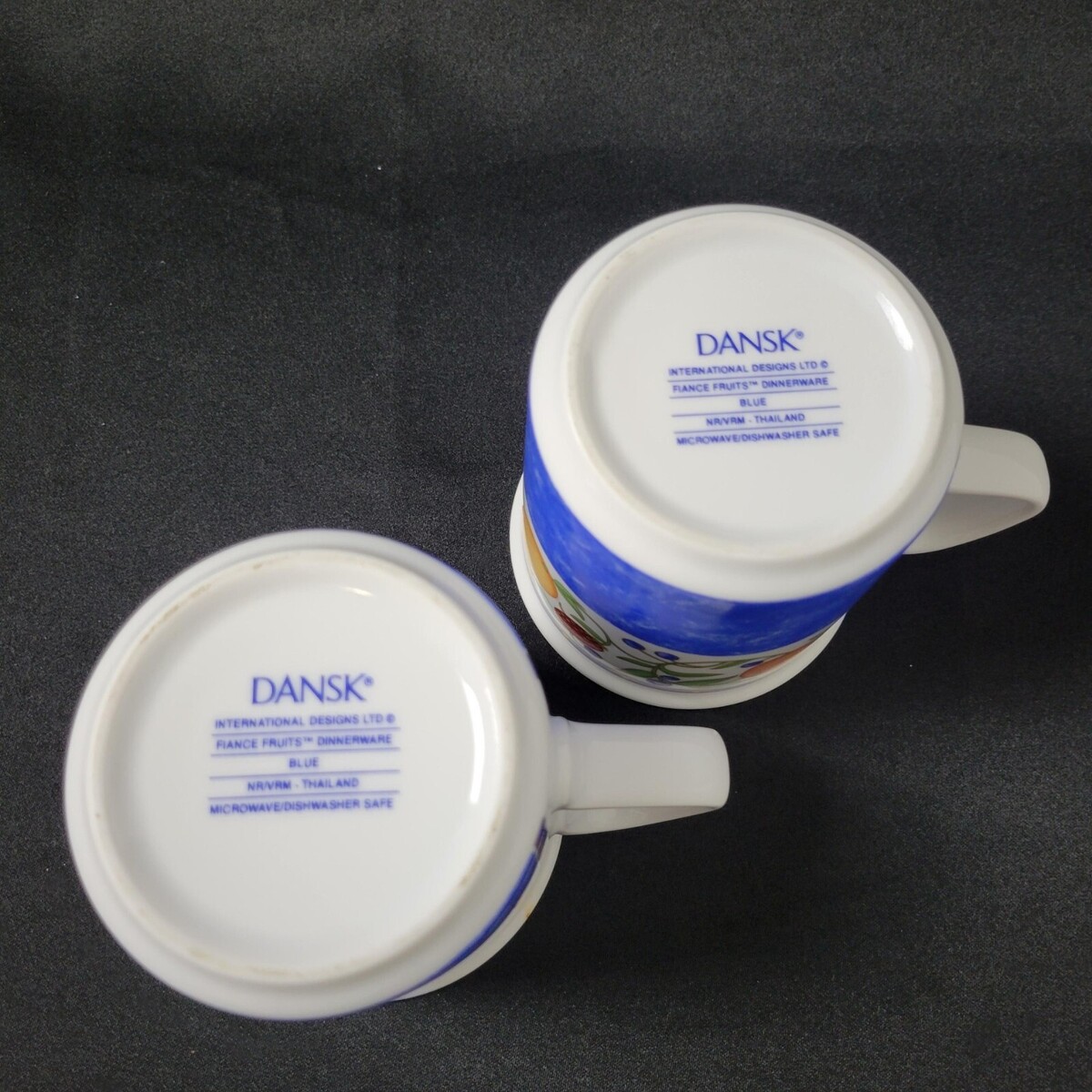 Dansk Vintage Coffee Cups (2) "Fiance Fruits" Pattern HTF Blue Great Condition
