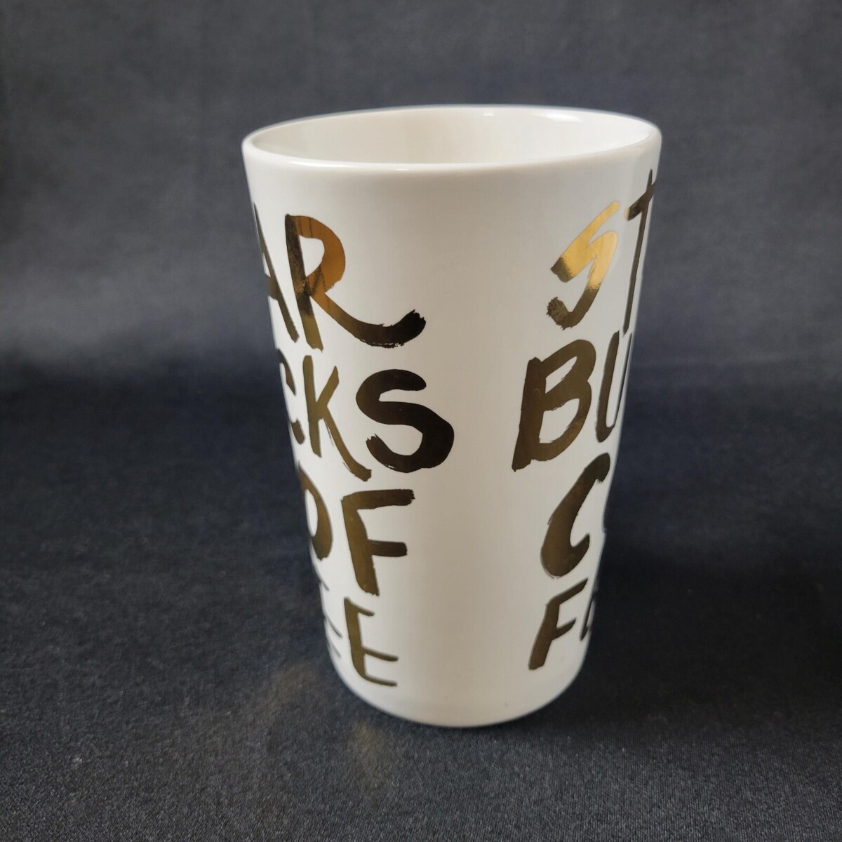 Starbucks Coffee 2015 White Gold Graffiti Lettering Latte Tall Mug 16oz Cup Tea