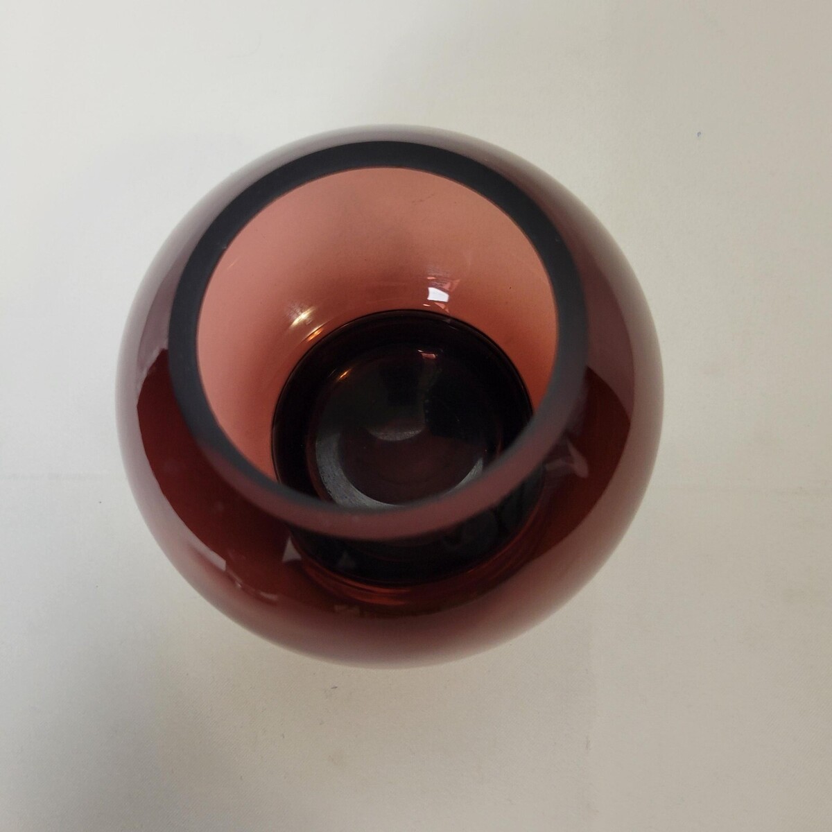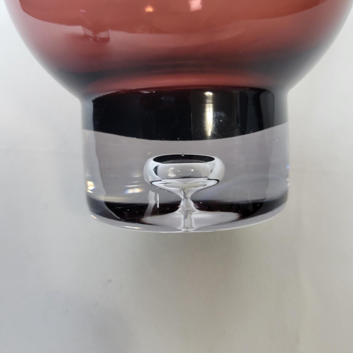 Purple Amethyst Blown Art Glass Vase Candle Votive Air Bubble Clear Base 5" EUC