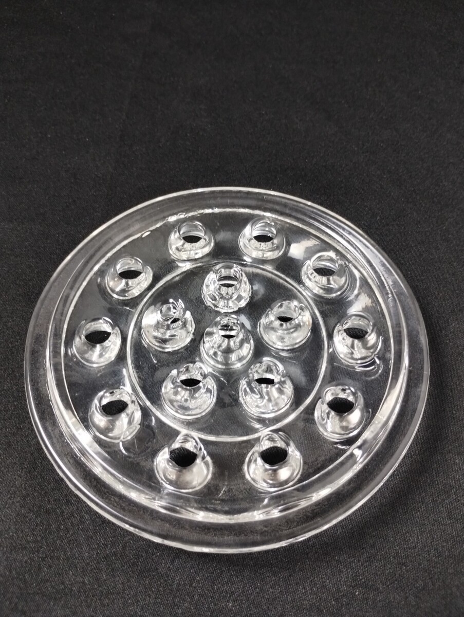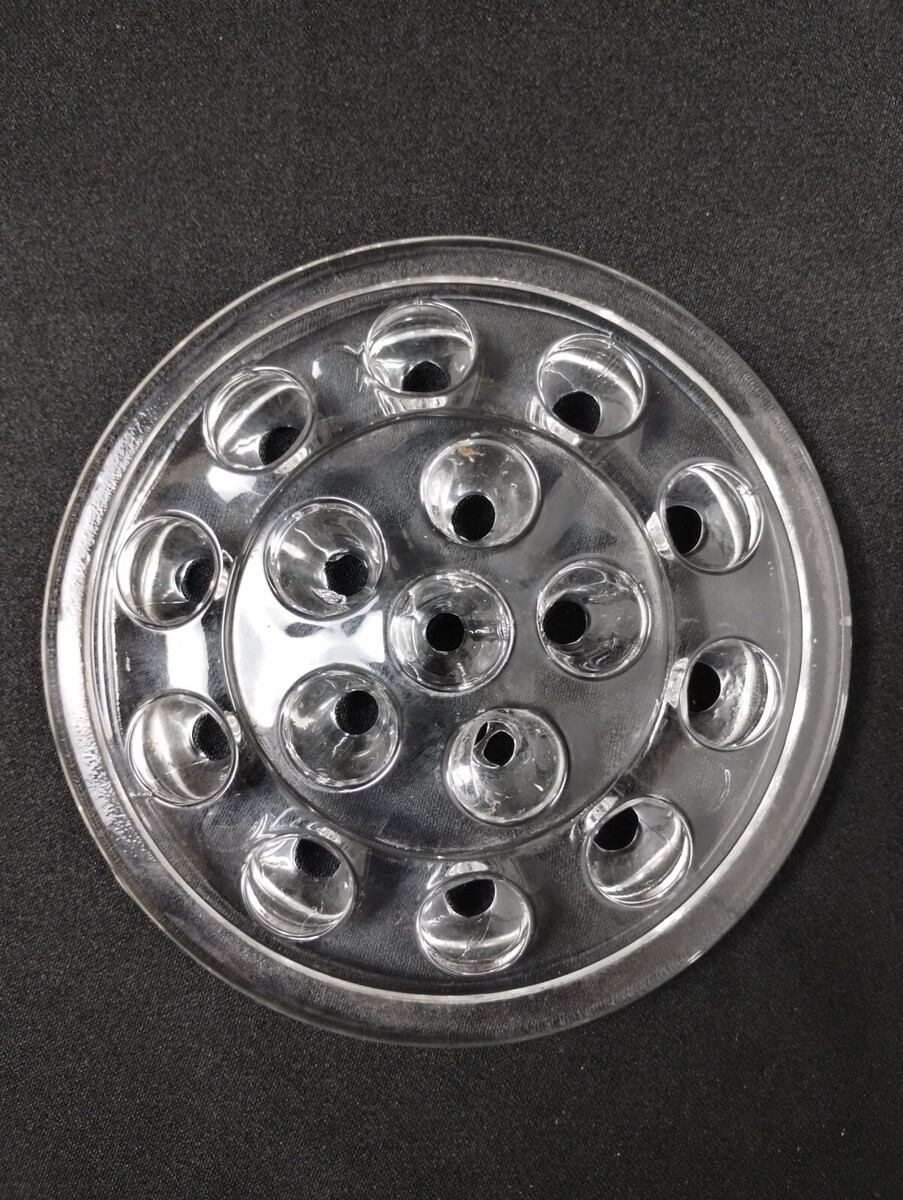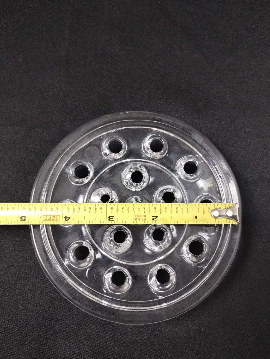 Vintage Large Clear Glass Flower Frog Round With 16 Holes 4.5" Fitter 5" Wide