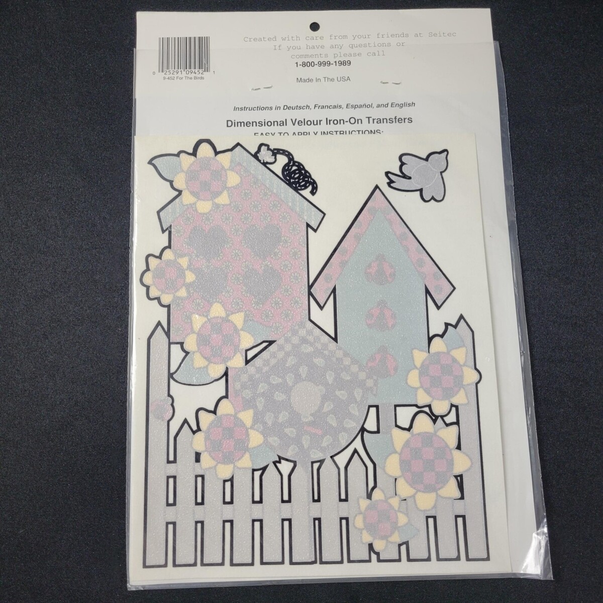 VTG Cache Junction Iron-on Transfer Garden Birds Birdhouse Vintage NOS Crafting
