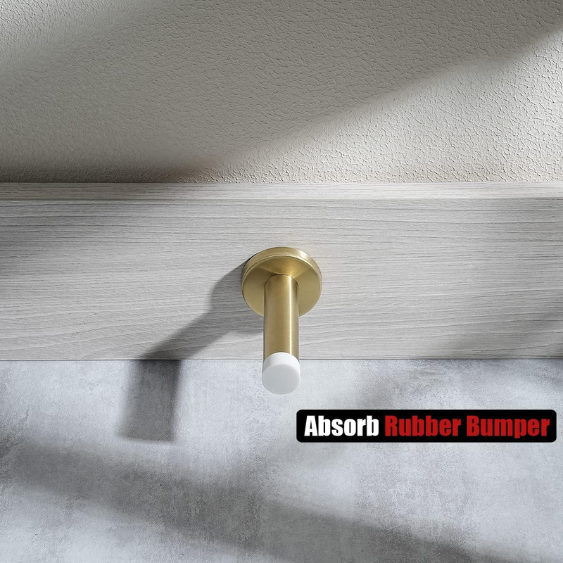 Door Stopper Gold, 304 Stainless Steel Thicken 1Mm Sound Dampening Door Stop Bumper Wall Protetor 2 Pack, Brushed Gold Black Tip, DSB5-WG-P2
