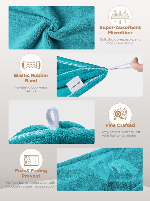 SUPER ABSORBENT MICROFIBER HAIR TOWEL: Hicober hair towels are made of a super absorbent microfiber towel, breathable, odorless for quick dry hair