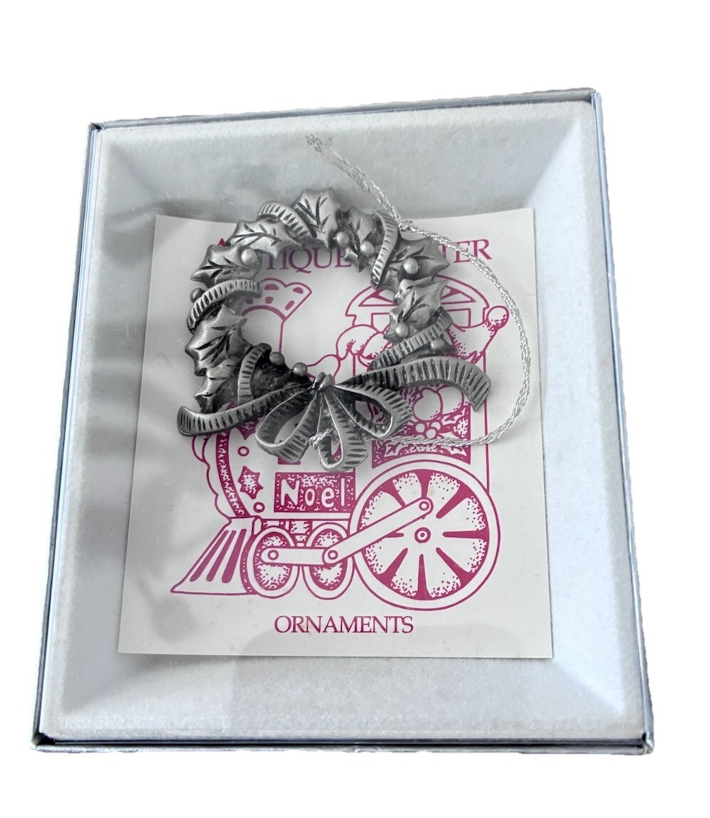 Wallace Silversmiths Antique Pewter Wreath Ornament Christmas Bow Holly Berries