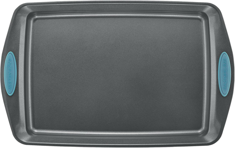 Bakeware Nonstick Cookie Pan Set, 3-Piece, Gray with Agave Blue Grips
