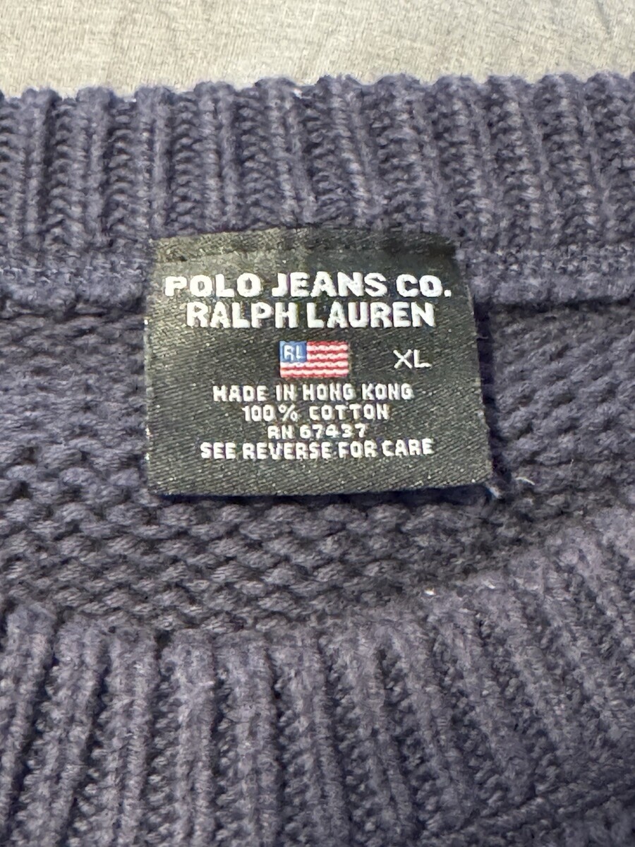 Polo Jeans Co Ralph Lauren Flag Knit Sweater Men’s XL Navy Cotton USA Style