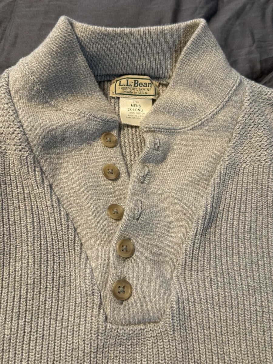 L.L. Bean Men’s 2X Long Henley Sweater Gray and 10 similar items