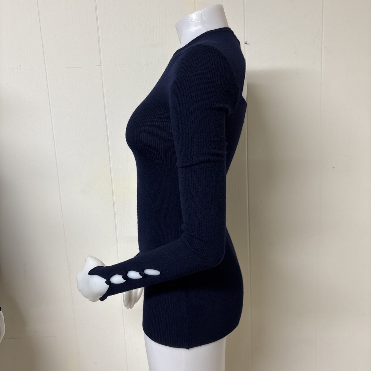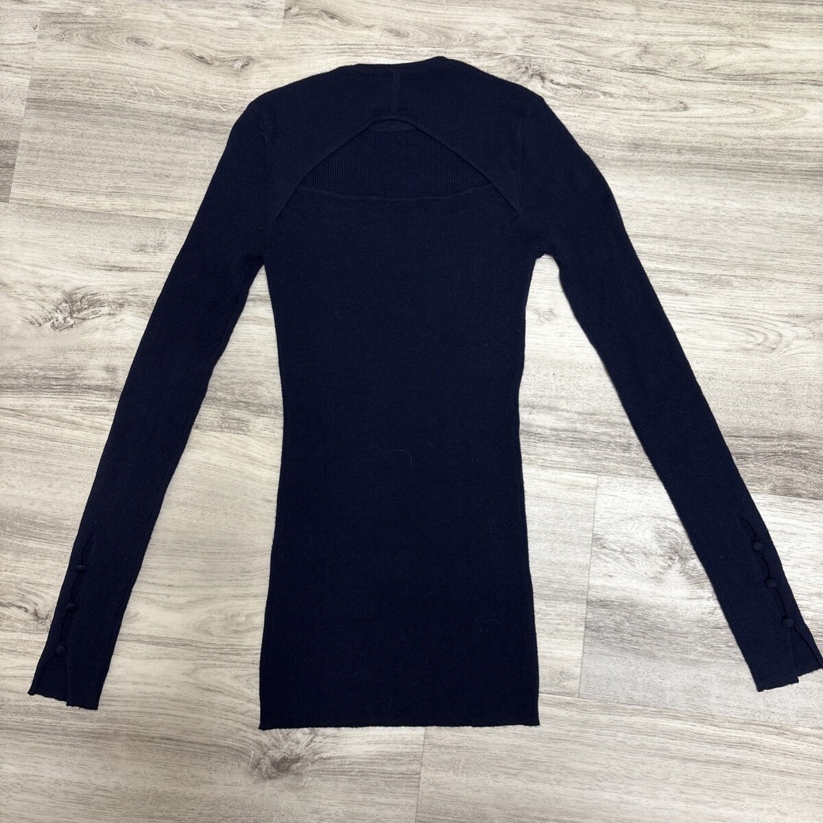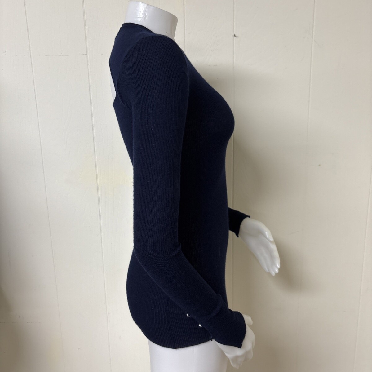 Lewit Wool Sweater Womens XS Blue Merino Pullover Cut Out Back & Button Detail