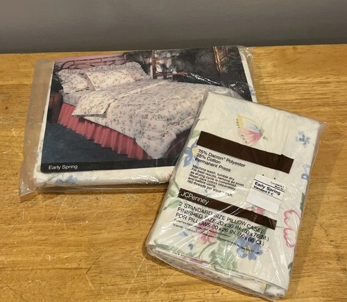 Vintage JCPenney Full Flat Sheet 2 Pillow Cases Early Spring Floral Flowers USA