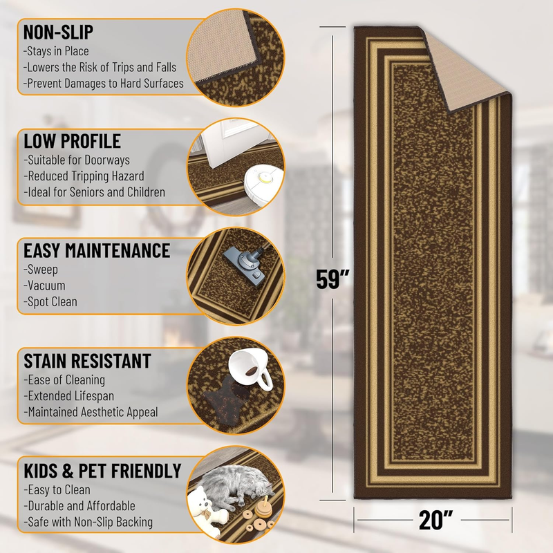 Hallway Runner Rug 20" X 59" Non Slip Border Area Rugs Easy to Clean Laundry Rug