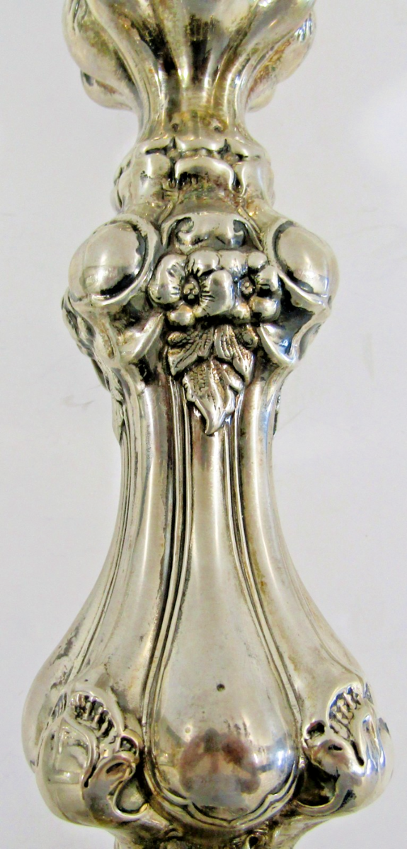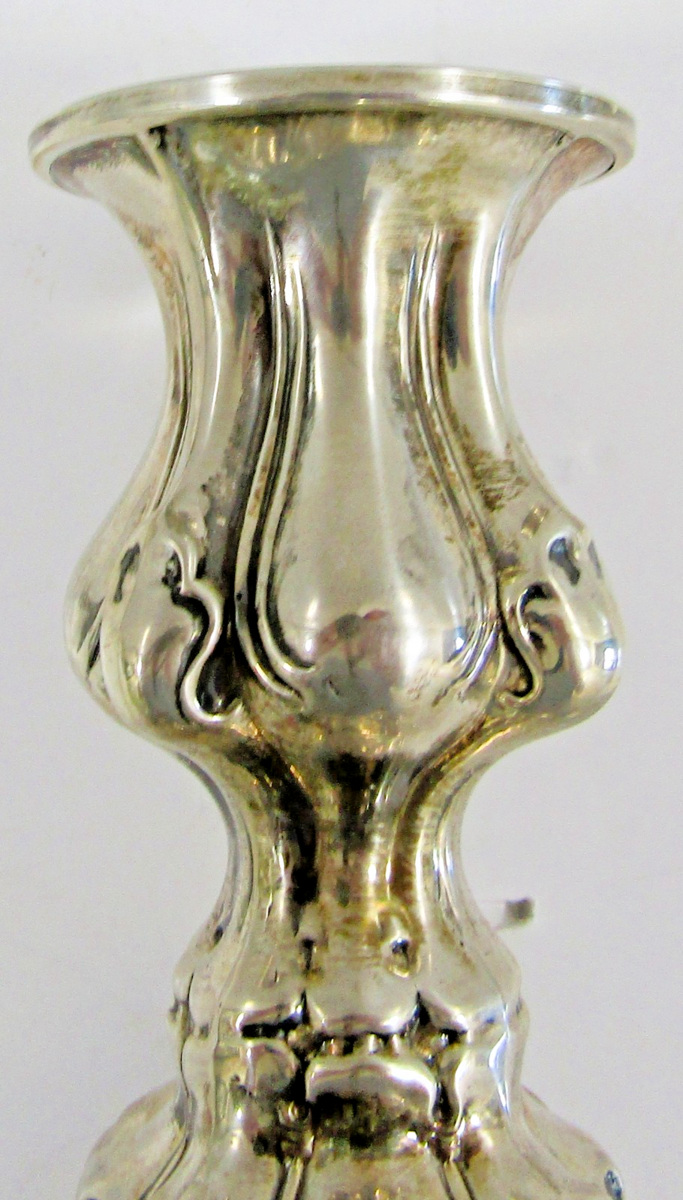Matched Pair of Antique Hazorfim Baroque Sterling Silver Candlesticks