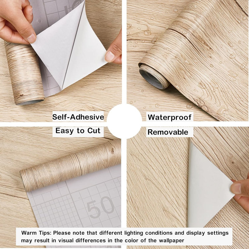 ?Material and Size?: Wood grain contact paper, 15.778.7inch/roll. Covering 8.53 square feet. Upgraded and thickened wood grain wallpaper is more durable than traditional wallpaper. It is not easy to produce bubbles and can be easily fixed