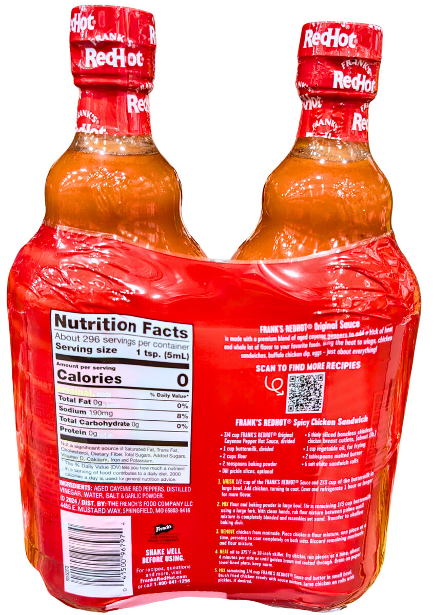Frank's Red Hot Original Cayenne Pepper Sauce 2 x 25 Oz Bottles