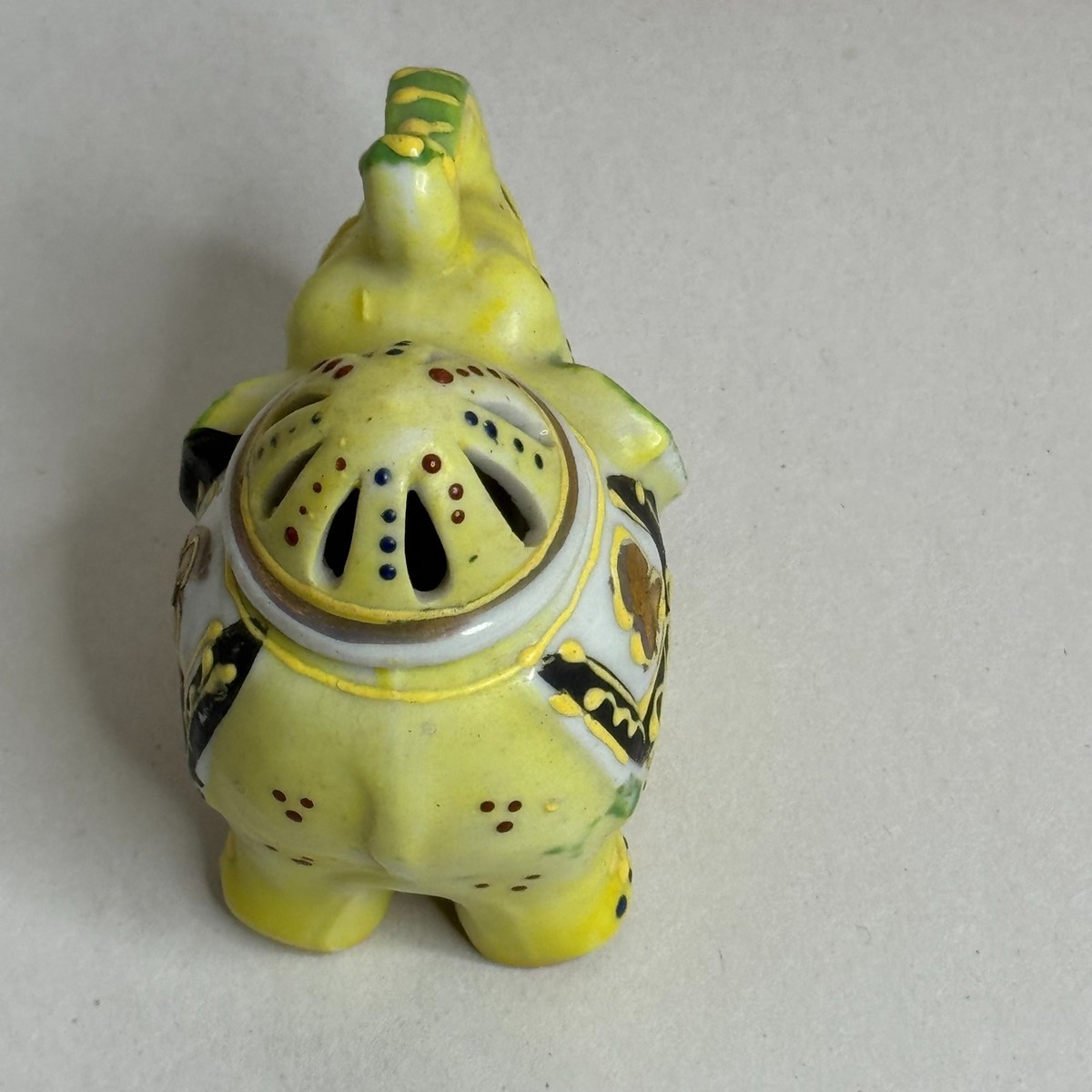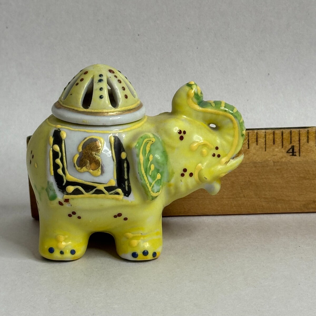 Vintage Ceramic Elephant Incense Holder Burner With Lid Yellow Japan MCM
