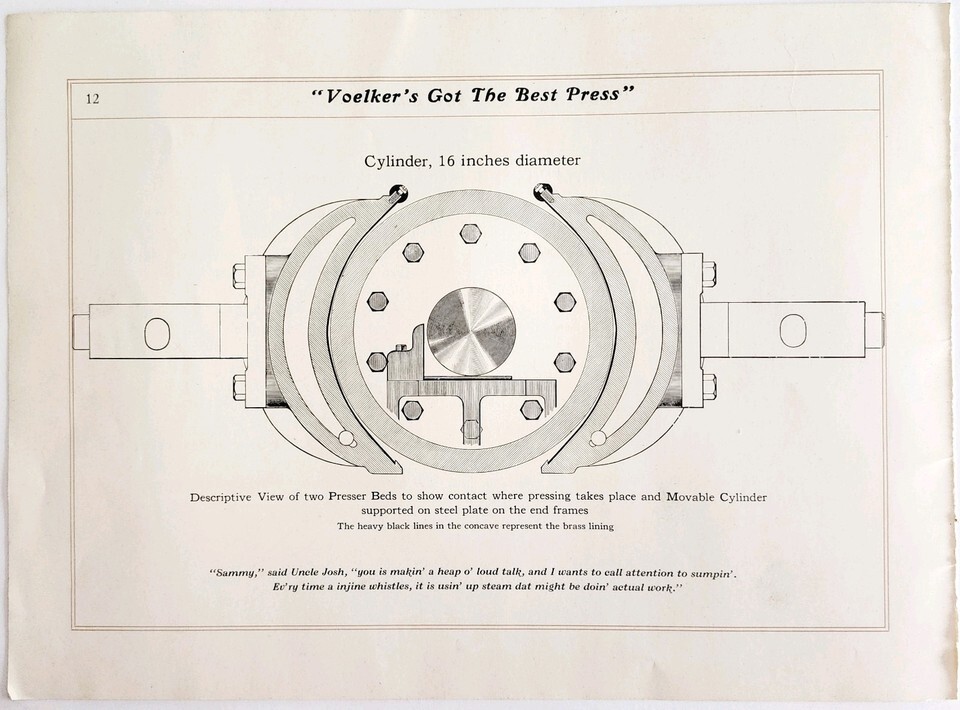 1930s Voelker Cloth Presser Bed Cylinder Advertisement Industrial Machine DWSS16