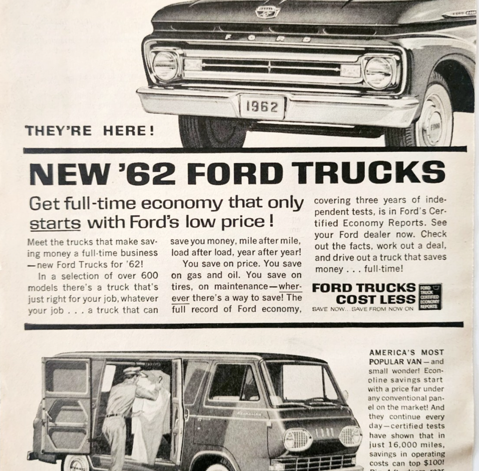 1962 New Ford Motor Trucks Vans Advertisement Automobilia Vehicles DWF28