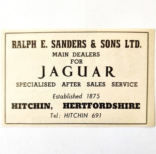 1954 Ralph Sanders Jaguar Dealer Advertisement Import Automobilia Hitchin E89F1