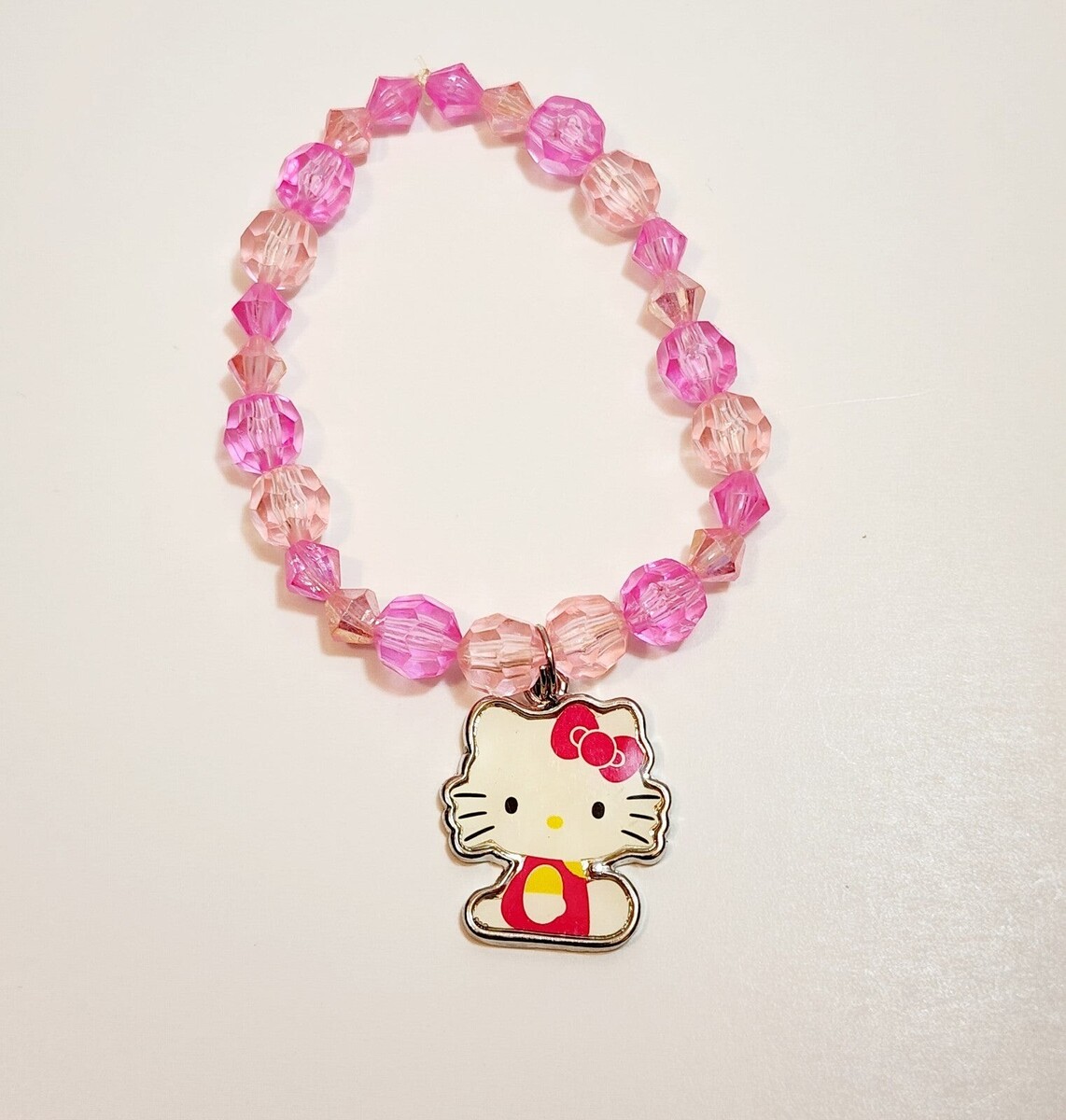 Sanrio Hello Kitty Charm Pendant On Elastic Plastic Bead Bracelet