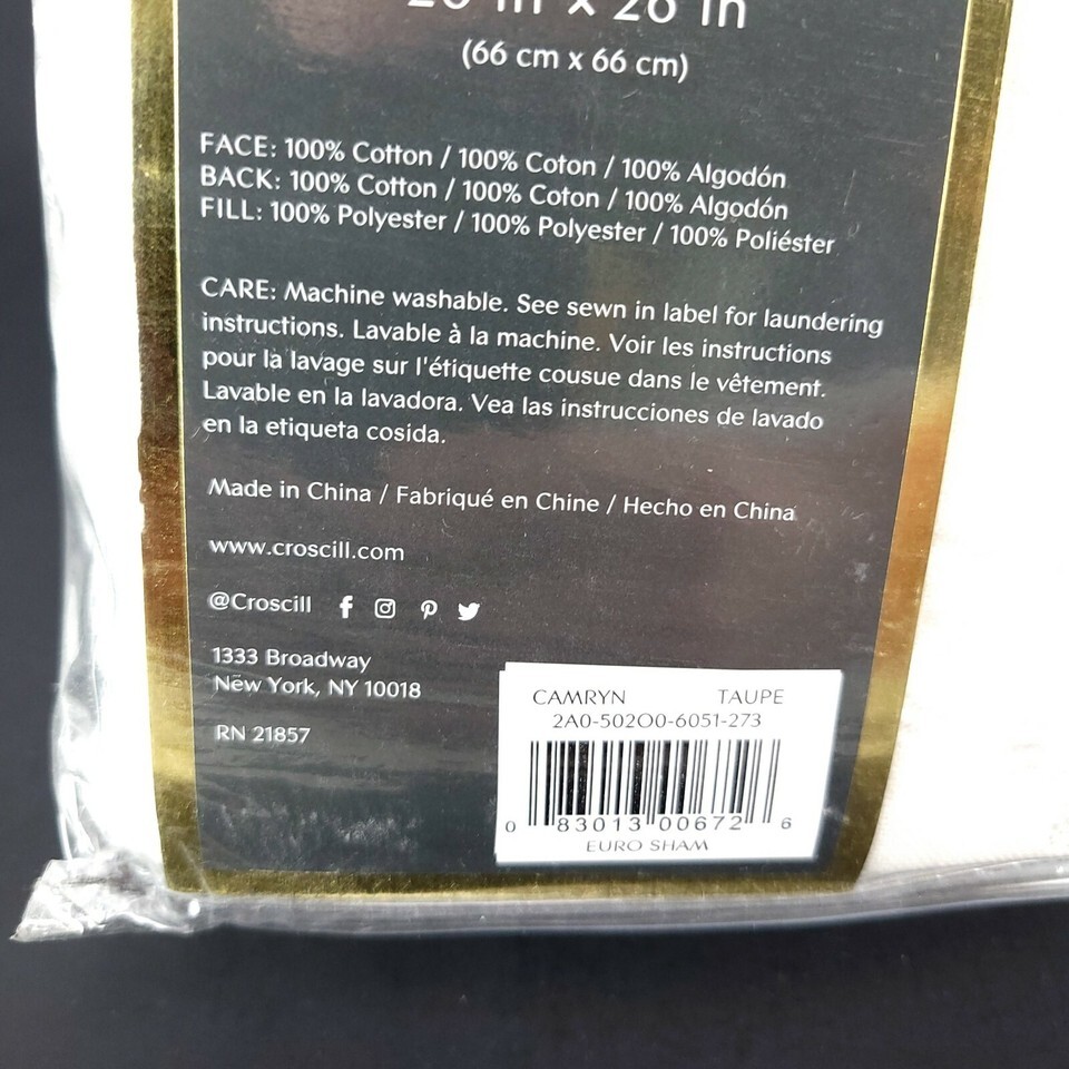 Croscill Camryn Euro Pillow Sham Taupe 26x26 Square Decorative Cushion Cover
