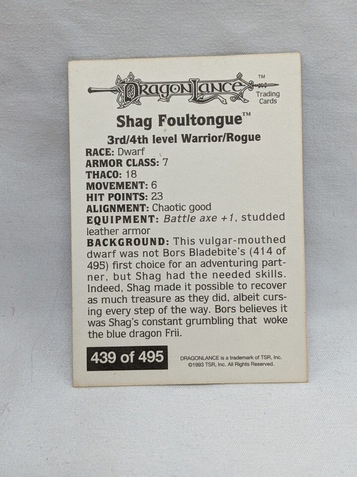 TSR Series 1993 Dragon Lance Shag Foultongue Red Border Rare Trading Card