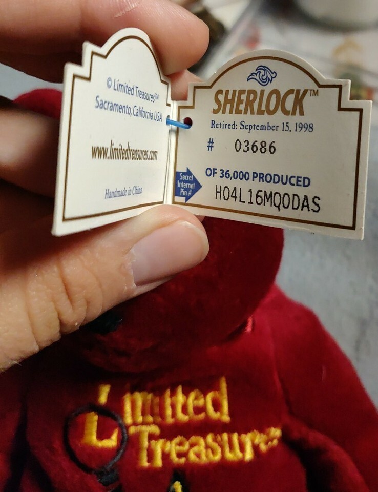 Limited Treasures Premier Edition SHERLOCK BEAR Retired 1998 Plush