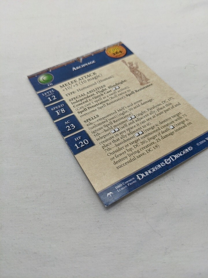 Archmage League Promo Dungeons And Dragons Angelfire Miniatures Game Stat Card