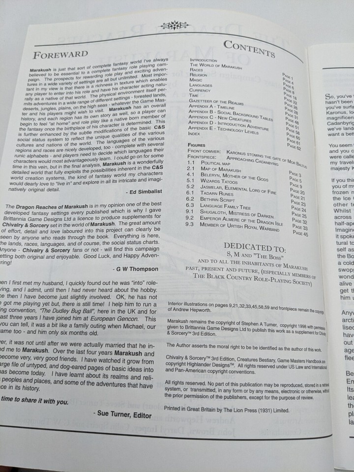 *NO Map*Chivalry And Sorcery 3rd Edition The Dragon Reaches Of Marakush Fantasy