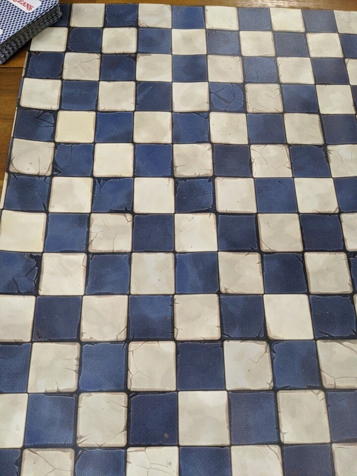 Blue And White Checker Board Fantasy Palace RPG Vinyl Map 36" X 27 1/2". Combined Shipping (for USA Customers Only)