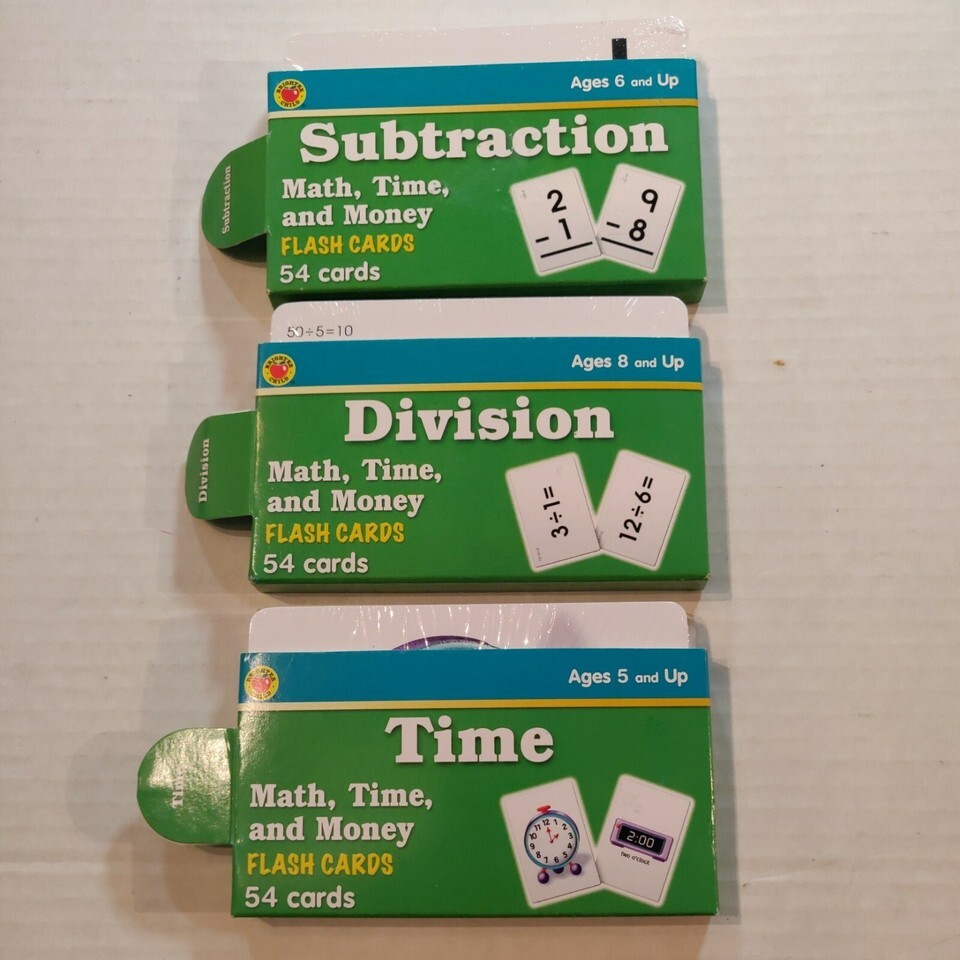 3 Brighter Child 'Math, Time Money' Flash Cards - Subtraction, Division, Time. Condition is "New". Shipped with USPS First Class. Combined Shipping (for USA Customers Only)