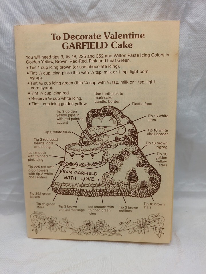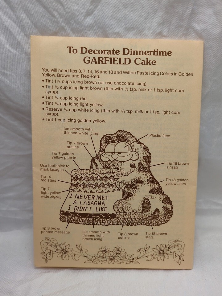 Vintage 1984 Garfield Cake Pan Decorating Instructions Sheet