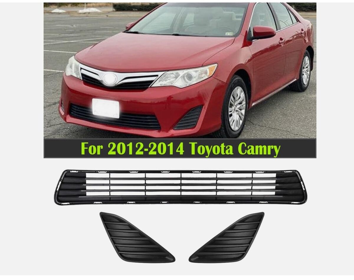 Type?Grille And Fog Lamp Bezel Color?Black Placement on Vehicle?Front, Left, Lower, Right Manufacturer Part Number?MW-CP-OM-0416 OE/OEM Part Number?5311206200, 5212806260, 5212706260 Material?ABS Interchange Part Number?5311206200, 5212806260, 5212706260 Other Part Number?5311206200 5212806260 5212706260 Number of Pieces?3 Package Included?(1) Bumper Lower Grille, (2) Fog Light Cover Fitment?For 2012-2014 Toyota Camry Fitment Note?For Models Without Fog Lights Fitment Type?Direct Replacement