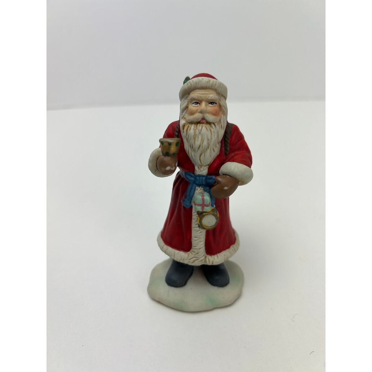Christmas Traditions 4" Ceramic Santa Figurine Red Coat Hand Painted w Box