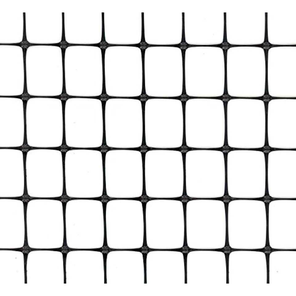 Material: Polypropylene. Height: 3 ft. Length: 50 ft. Color: Black. Mesh Size: 1 in. UV Stabilized.