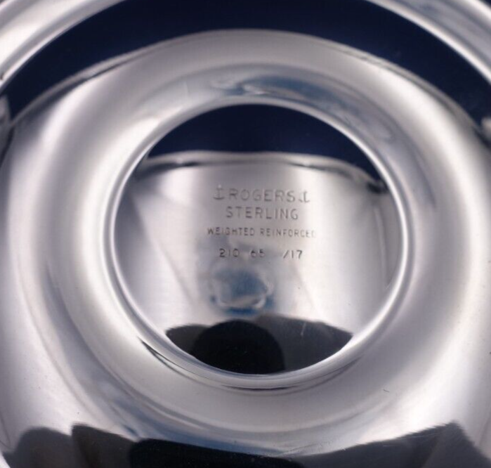 Beautiful Rogers sterling silver candlestick pair marked #210 65/17. The candlesticks measure 9" tall x 4 1/8" (diameter at base) and are weighted. The pieces are not monogrammed and are in good estate condition as shown in the photos. Fantastic!