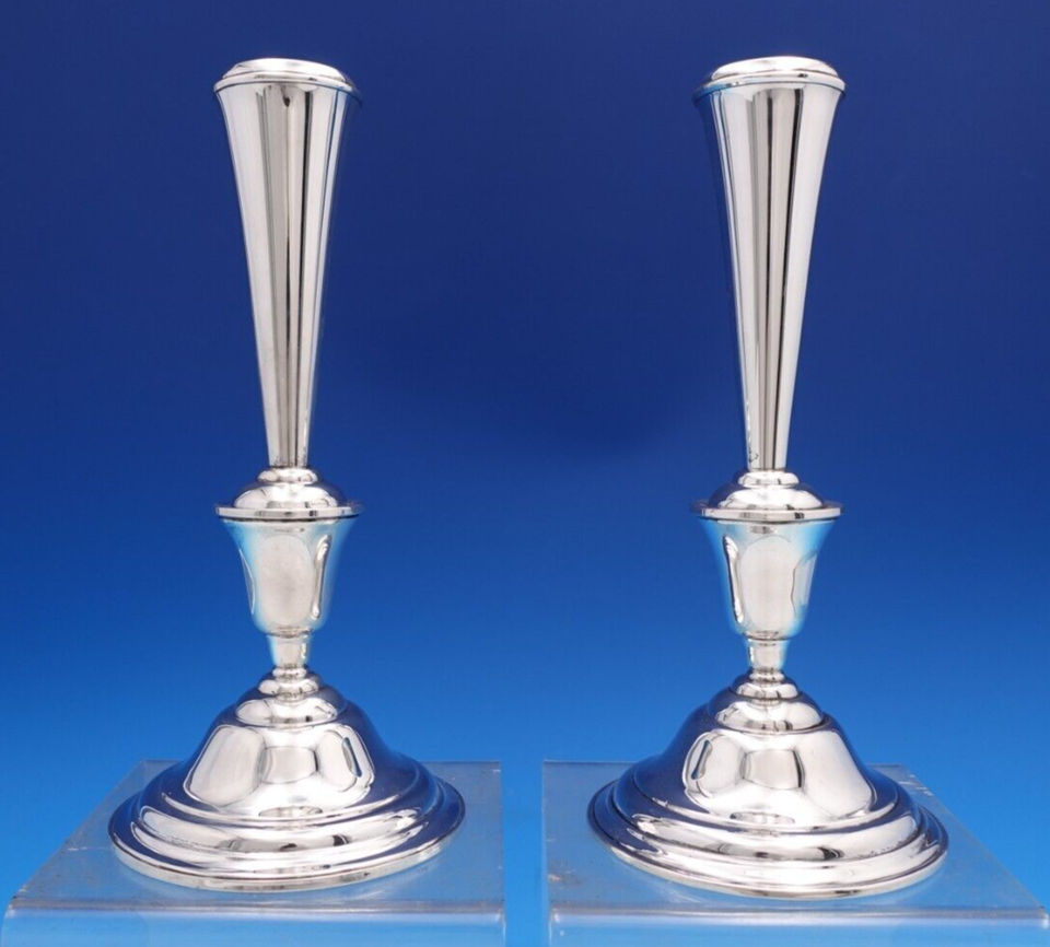 Rogers Sterling Silver Candlestick Pair #210 65/17 9" x 4 1/8" Weighted (#8195)