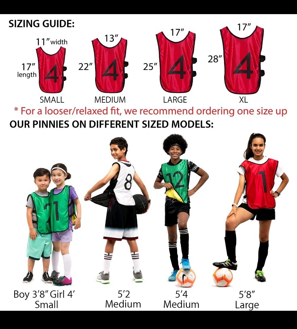 The Set of 12 XL Pinnies LVL10 Sports Pinnies is a versatile and practical solution for sports practice. These reversible numbered practice vests allow for easy identification during drills and games. The XL size If it's comfortably for an elementary size youth up to a small/ medium adult. They ensure a comfortable fit for athletes of all levels, making them a valuable tool for team sports.