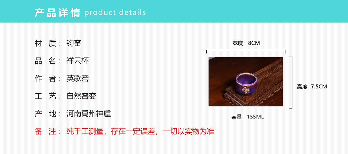 Traditional Chinese Jun Kiln Handcrafted Elephant Ear Teacup |