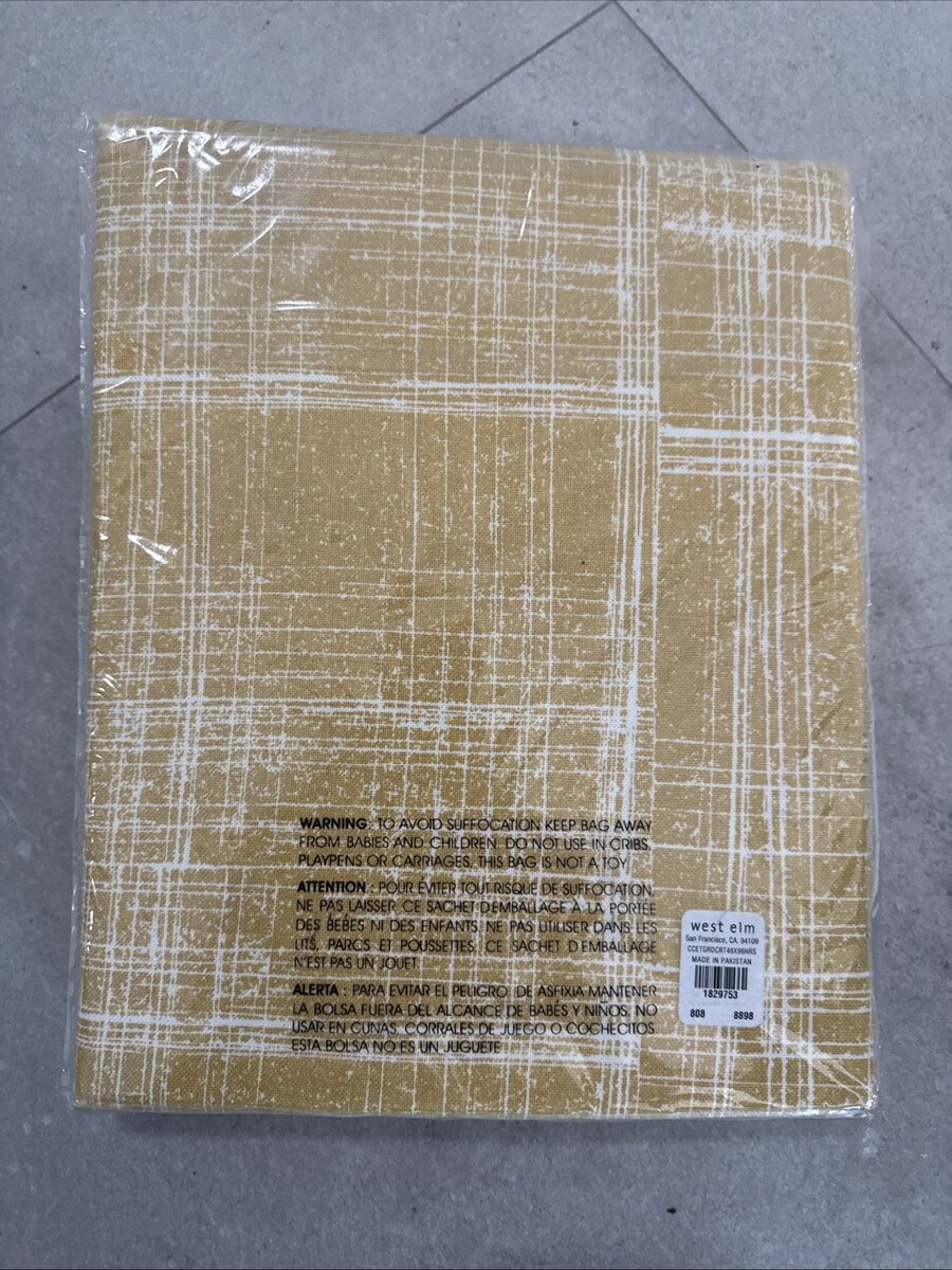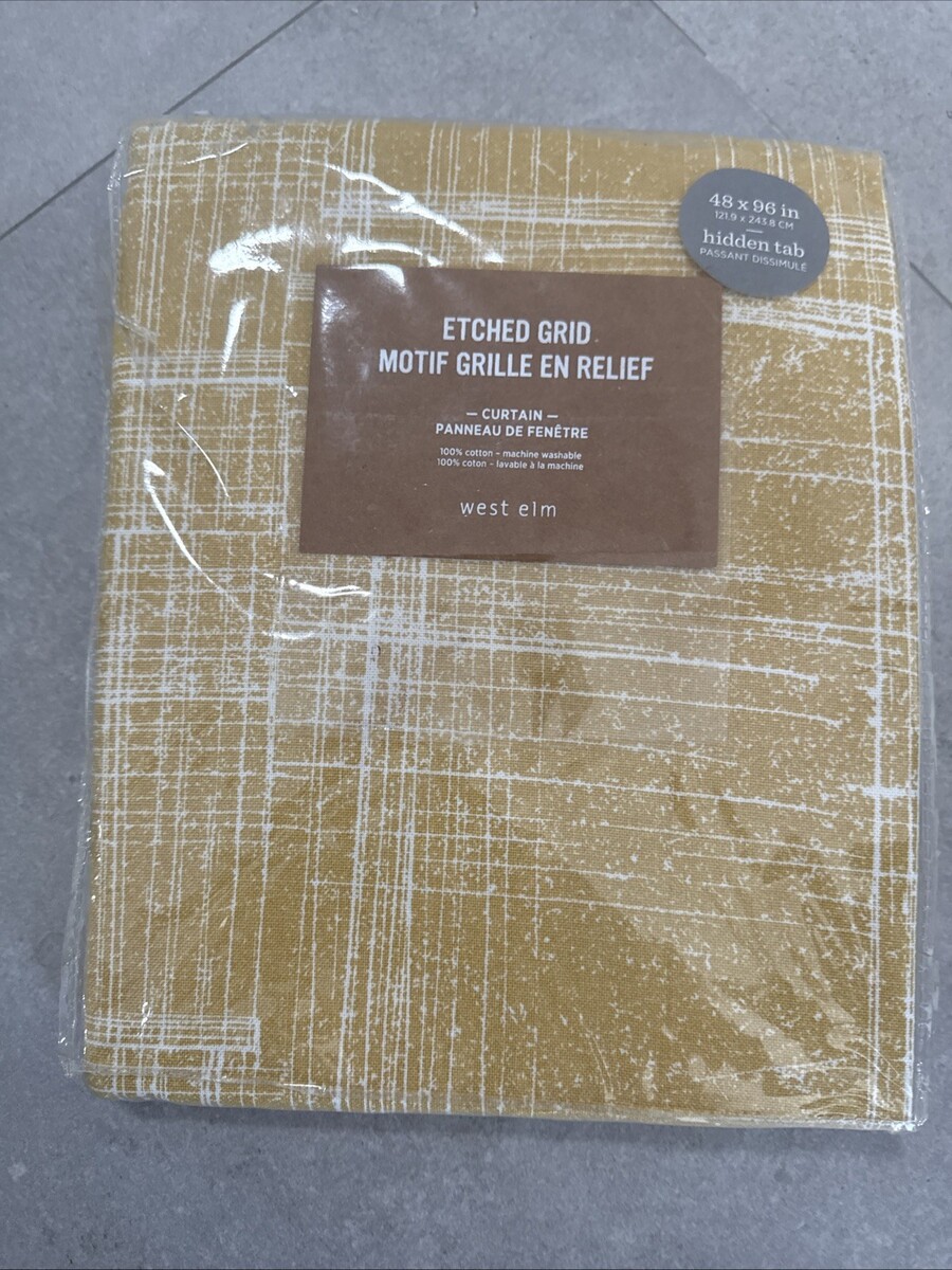 The West Elm Etched Grid Curtain Panel is a stylish and modern addition to any room in your home. Made from cotton with a striped pattern in a vibrant yellow color, these panels offer a trendy look with a hidden tab heading for easy installation. This panel measures 48 inches wide and 96 inches long, providing a sleek and elegant drape for your windows. Perfect for adding a pop of color and style to your living space. Hidden tab. New in package.