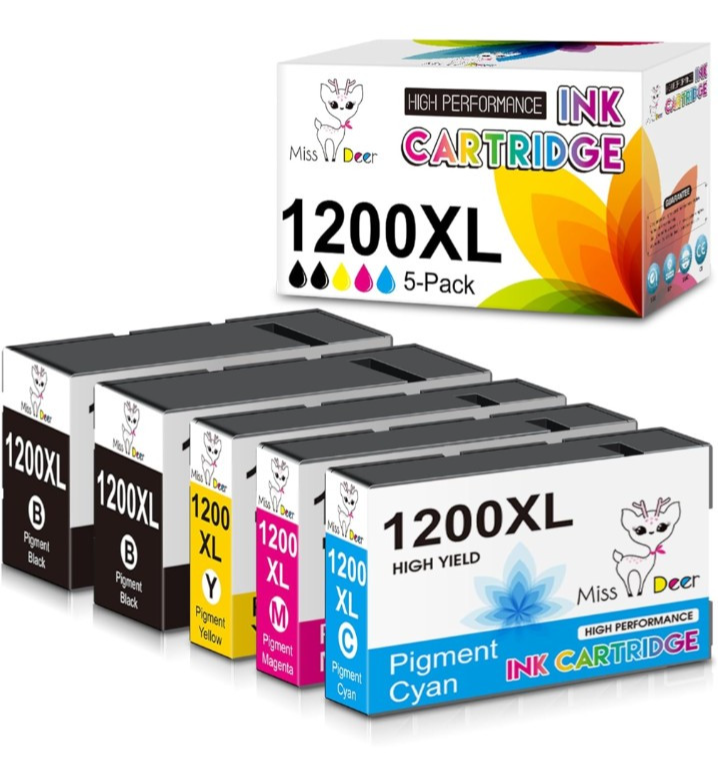 Maxify 1200 Ink Cartridges Compatible Replacement for Canon 1200XL PGI-1200 XL PGI1200XL for Maxify MB2720 MB2320 MB2020 MB2120 MB2350 Printer 5-Pack (2 Black, 1 Cyan, 1 Magenta, 1 Yellow) Miss Deer