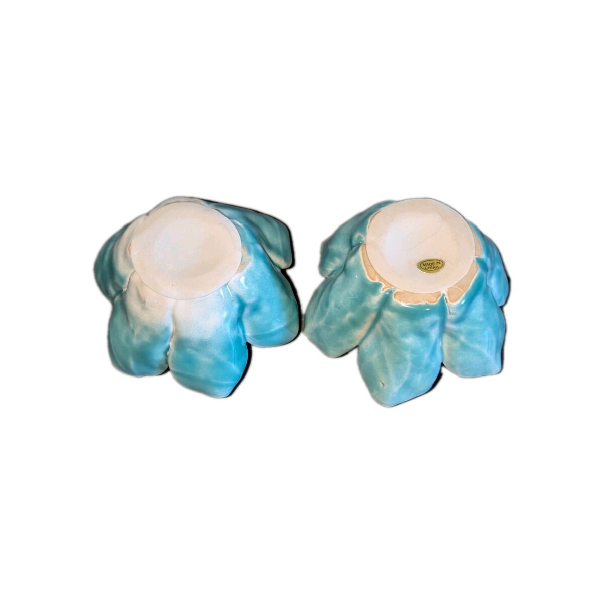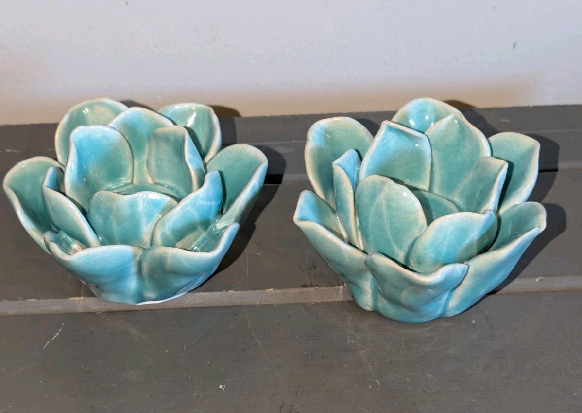 Teal Lotus Tea Light Or Candle Holder Set Of Two Ceramic
