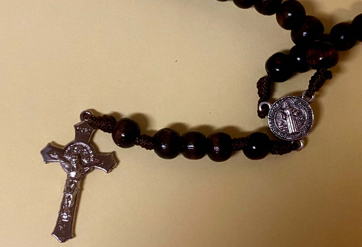 You are purchasing a beautiful wood rosary box with an acrylic image of Infant of Prague. It comes with a wood rosary with the medal of Saint Benedict.