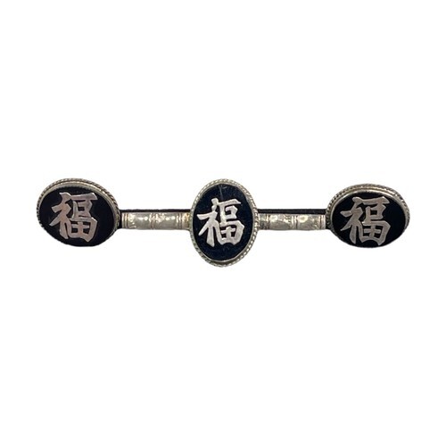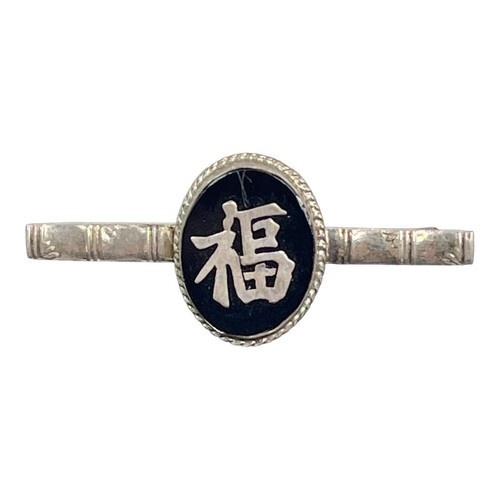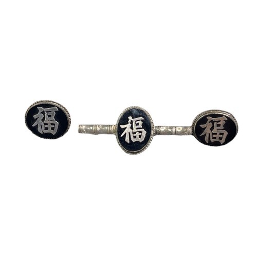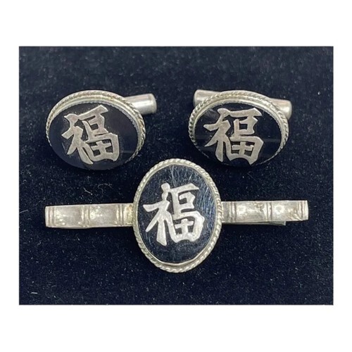 Vintage Sterling Silver 925 Black Onyx cuff links & tie bar Chinese Fu